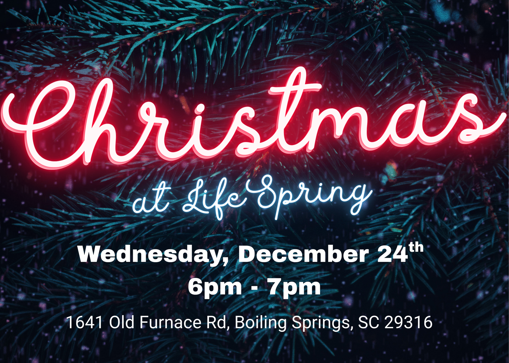 Join us on Wednesday, December 24, 2025, from 6:00–7:00 PM at LifeSpring Church (1641 Old Furnace Rd).