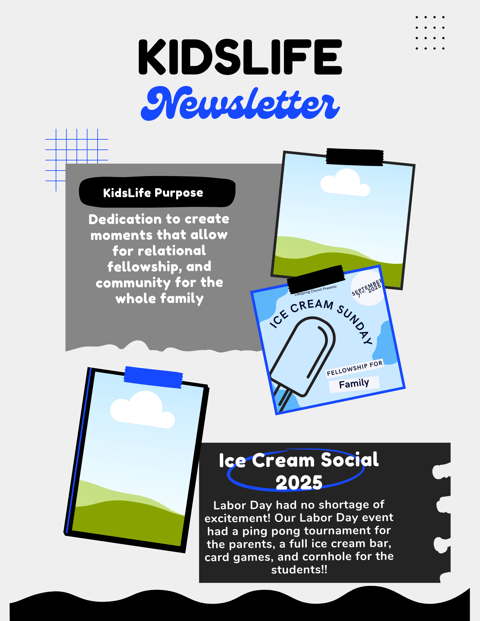 Purpose Statement: To be a kid's ministry that is feeding into the next generation of youth through moments of community and fellowship